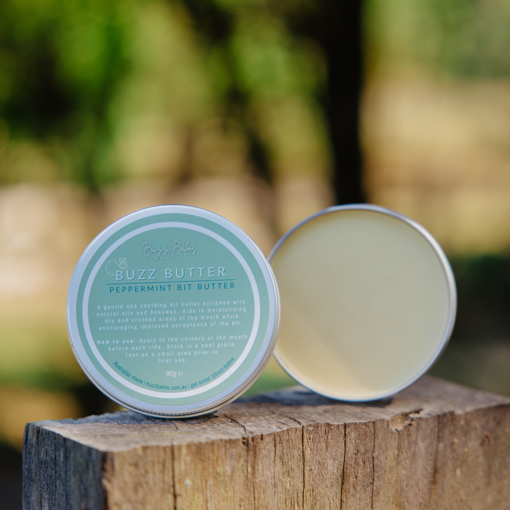 This peppermint flavoured bit butter is 100% natural, handmade from a nourishing blend of beeswax, cocoa butter, mango butter, coconut oil and olive oil. Moisturise cracked, calloused and dry lips while improving bit acceptance. Trust us when we say our Buzz Butter smells good enough to apply as a lip balm - we don't blame you if you do! Best of all our Bit Butter is Australian made, palm oil free and nasties free.
